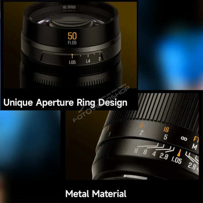 - Brightin Star MF 50mm F1.05 sa pýši celokovovou konštrukciou tela. Kov poskytuje nielen výrazne vyššiu odolnosť voči mechanickému poškodeniu, ale aj prémiový haptický zážitok. Každé otočenie zaostrovacieho prstenca a clonového krúžku je hladké, presné a príjemne.