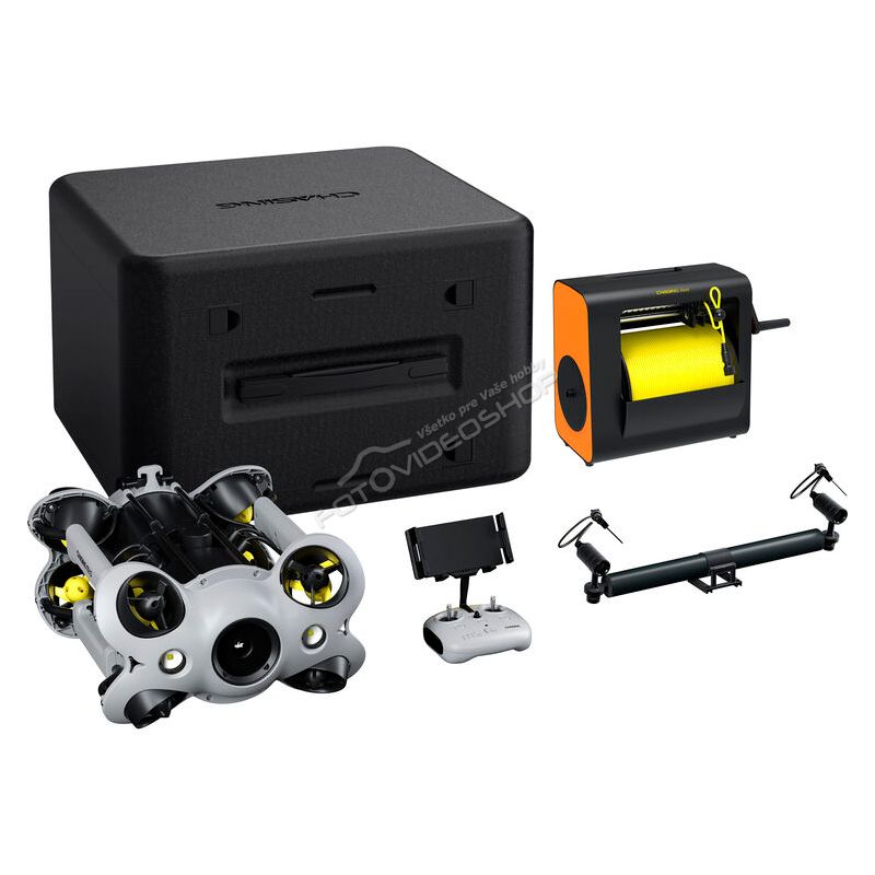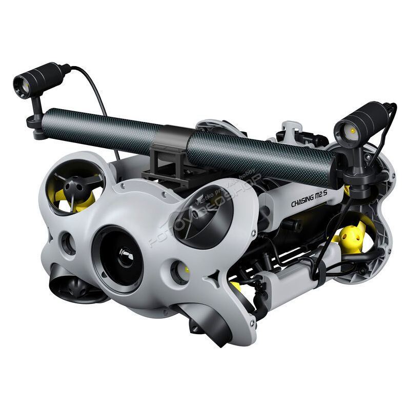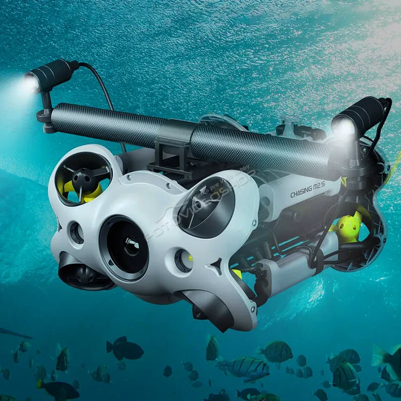 Profesionálny podvodný dron Chasing M2 S má 8 vektorových trysiek, ktoré poskytujú stabilný výkon. M2 S má snímač s rozlíšením 12MPx a umožňuje záznam videa 4K 30 fps, alebo Full HD 30/60/120 fps. Dron je tiež kompatibilný s voliteľným vybavením, ako je robotická ruka, GoPro kamera, externé svetlá atď. Technológia proti zaseknutiu motora pomáha zaistiť, aby sa M2 S nezaboril do piesku. Chasing má 2 vstavané LED svetlá. S jednou batériou dokáže pracovať až 4 hodiny.
