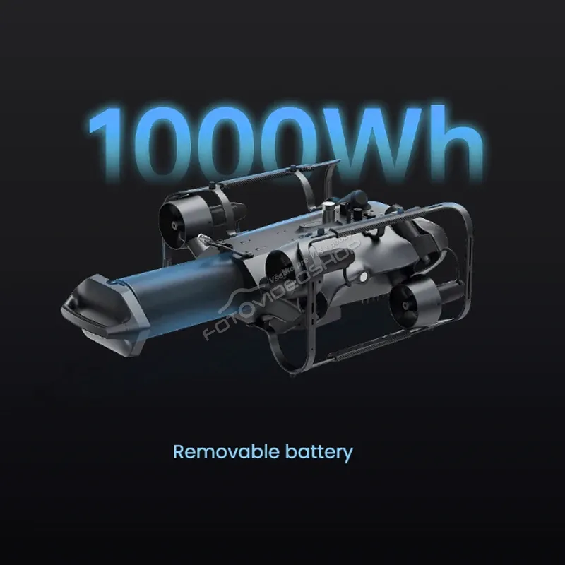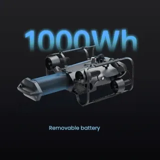- Duálny systém napájania umožňuje používať vymeniteľnú batériu s kapacitou 1000 Wh alebo napájanie z brehu pre dlhodobé misie.