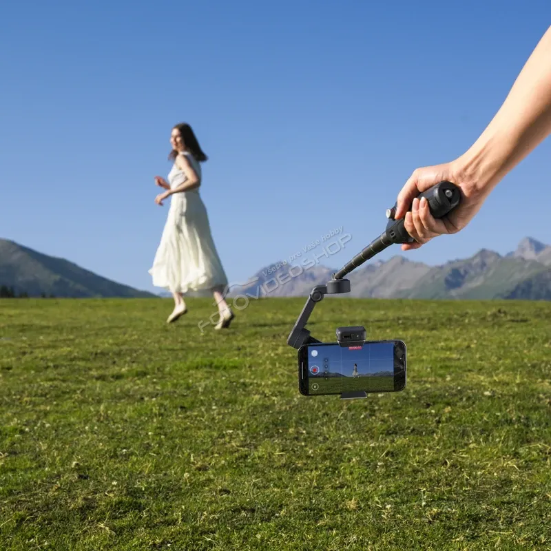 Selfie tyč zabudovaná priamo v gimbale: Už nepotrebujete nosiť so sebou samostatnú selfie tyč. Jednoducho vysuňte integrovanú predlžovaciu tyč a získajte širší záber pre skupinové fotografie alebo videá. Ideálne pre cestovateľov, ktorí chcú minimalizovať množstvo príslušenstva.
