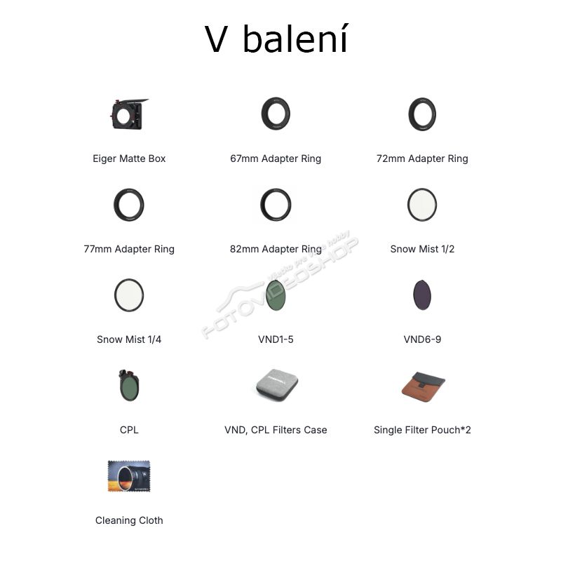 - Revolučný systém Eiger Matte Box končí s kompromismi pri používaní filtrov. Tento pokročilý systém kombinuje VND, CPL a ďalšie filtre v jednom elegantnom riešení, ktoré vám poskytuje absolútnu kontrolu nad svetlom a obrazom.