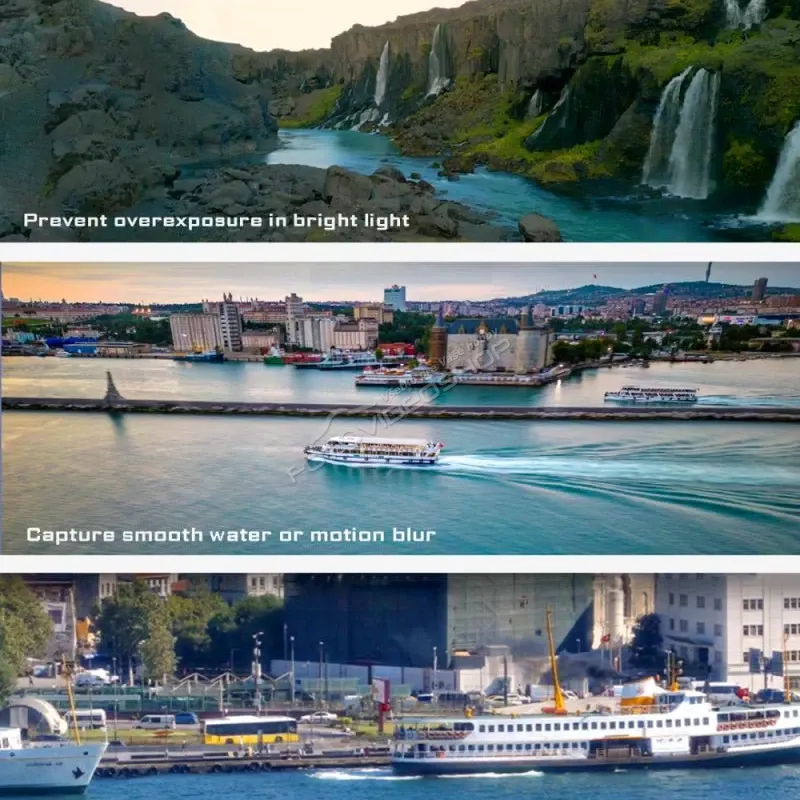 • ND16, ND32, ND64 - Ideálne pre bežné denné podmienky, umožňujú vám udržať správnu rýchlosť uzávierky pri zachovaní nízkej hodnoty ISO pre čistý obraz bez šumu