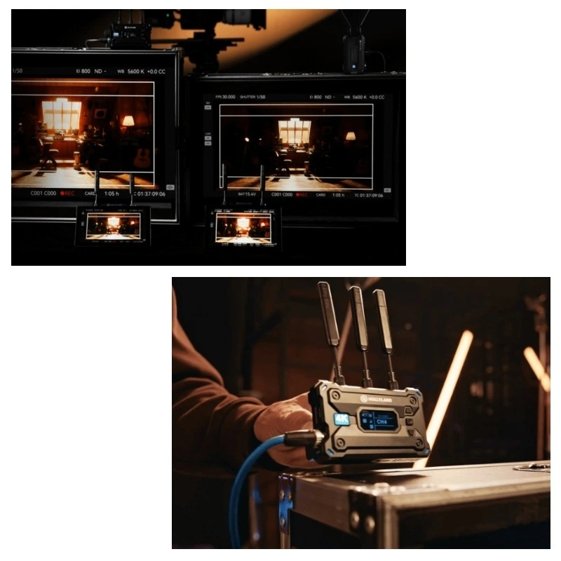 - Tento systém vám umožňuje sledovať obraz v reálnom čase na viacerých zariadeniach súčasne, čo znamená, že režisér, kameraman, focus puller aj klient môžu mať všetci prístup k živému obrazu bez kompromisov v kvalite či rýchlosti prenosu.