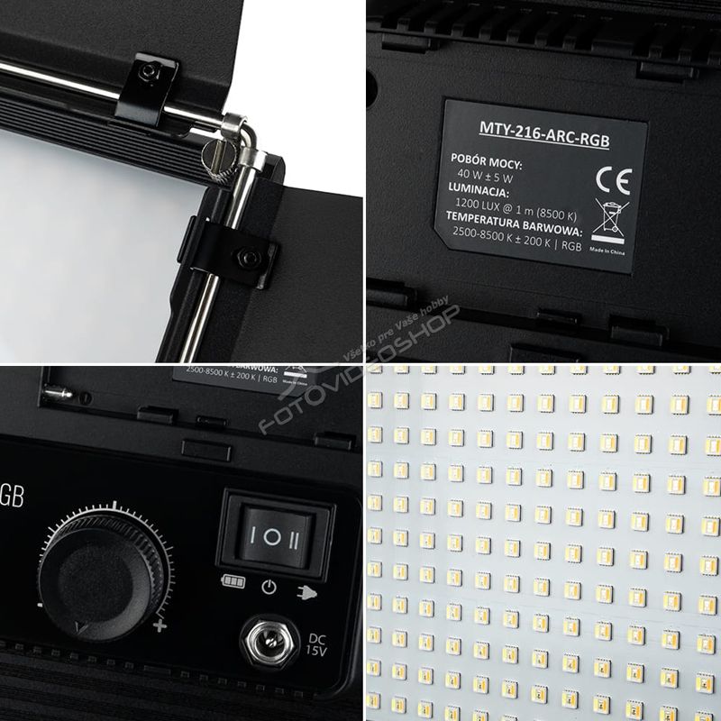 Špecifikácia Mitoya RGB 216 Led panel 2500-8500K (s klapkami)