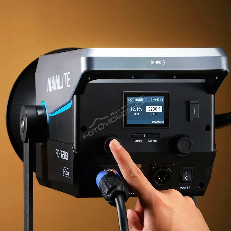 - Nanlite FC-720B je 750W AC LED spotlight navrhnutý tak, aby ste plnú flexibilitu bi-color svetla v jednom kompaktnom tele s rozsahom 2700 až 6500K, bez kompromisov v sile a kvalite