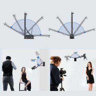 - Horizontálne nastavenie ramena tiež dosahuje 170°, čo vám umožňuje presné nasmerovanie svetla bez zmeny uhla kamery.
