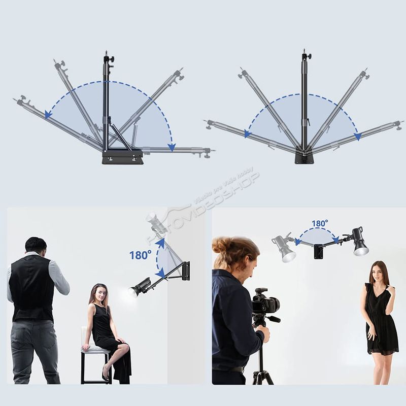 - Dvojsekčné teleskopické rameno s nastaviteľnou dĺžkou od 95 do 180 cm – prispôsobíte si ho podľa potreby scén.