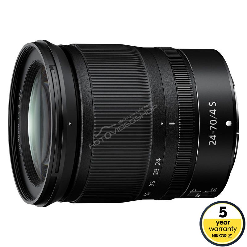 Zoomobjektív NIKKOR Z 24 – 70 mm f/4 S vyniká kompaktnými rozmermi (má výsuvný mechanizmus) a vysokou obrazovou kvalitou prémiovej triedy Nikon S-line. Objektív má 3 asférické prvky a 1 unikátny asférický prvok s mimoriadne nízkym rozptylom, pre vysokú ostrosť. Antireflexné vrstvy Nano Crystal zlepšujú kontrast a farby pri fotení v protisvetle. Nikon 24-70 f4 je vhodný najmä na cestovanie, eventy, fotografovanie krajiny, snímanie videa a ďalšie foto žánre. Poskytuje za prijateľnú cenu veľmi slušnú alternatívu objektívom 24-70mm f2,8.