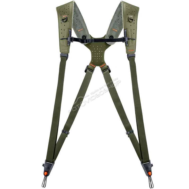 • 60mm široká ramenná podložka so zúženým popruhom rovnomerne rozkladá váhu po celej ploche ramien, čím výrazne znižuje tlak a únavu aj pri 12-hodinovom fotografovaní.