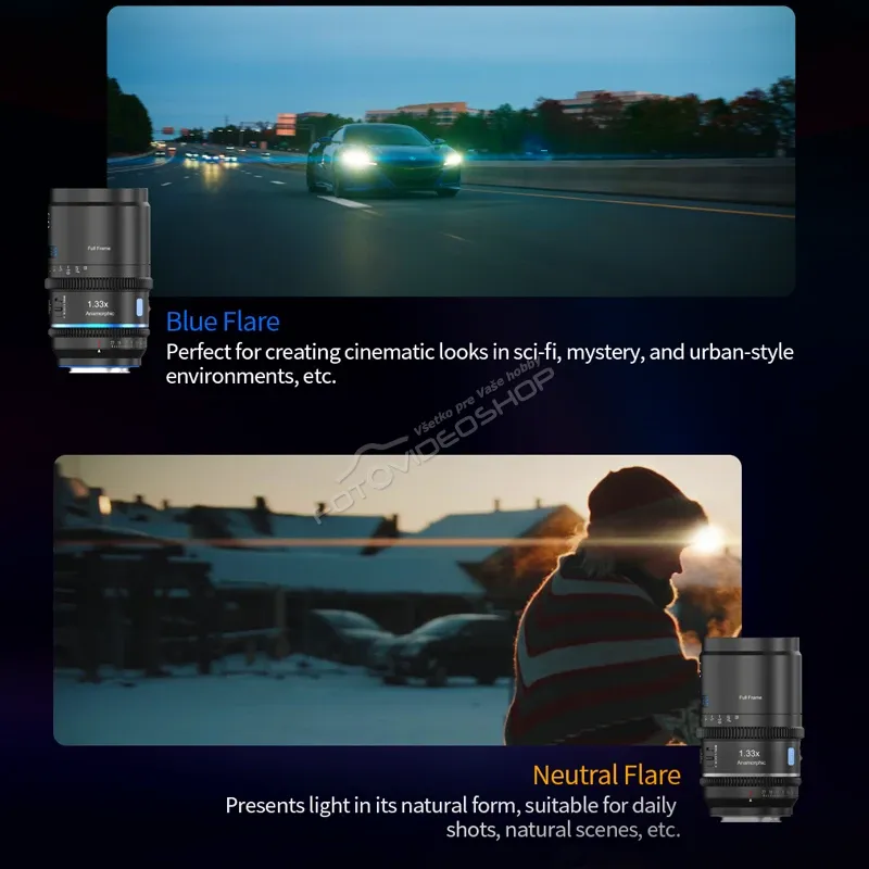 - SIRUI ponúka dve verzie fláru – dramatický Blue Flare pre výrazný vizuálny štýl alebo Neutral Flare pre čistejší filmový obraz.