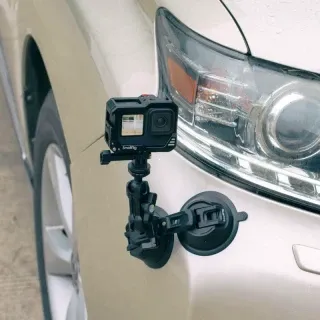Kamera sa montuje na druhý koniec magického ramena pomocou montážnej skrutky 1/4"-20. Súčasťou balenia sú dva protiprachové kryty, ktoré chránia vaše prísavky pred prachom a nečistotami, aby sa zabezpečilo čisté a pevné uchytenie. Súčasťou balenia je aj držiak na akčnú kameru v štýle GoPro.