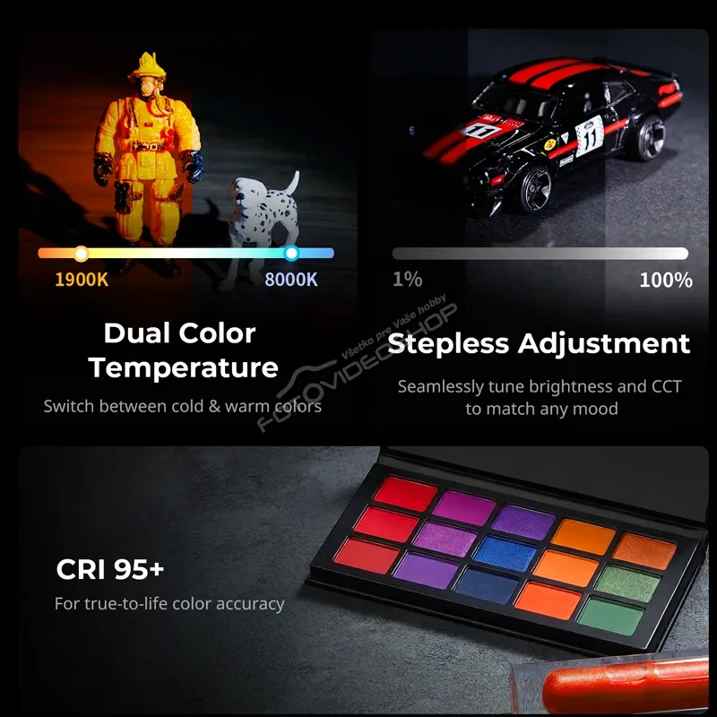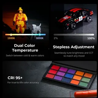 - Rozsah farebnej teploty od 1900 do 8000K umožňuje plynule prechádzať od teplého až po chladné denné svetlo.