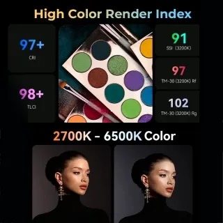 - CRI 97 a TLCI 98 zaručujú prirodzené odtiene pokožky a verné farby produktov