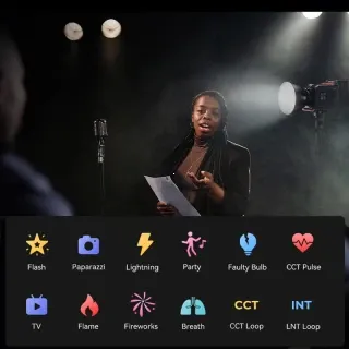 - 12 vstavaných svetelných efektov pre simuláciu bleskov, televízie, sviečky a ďalších scén