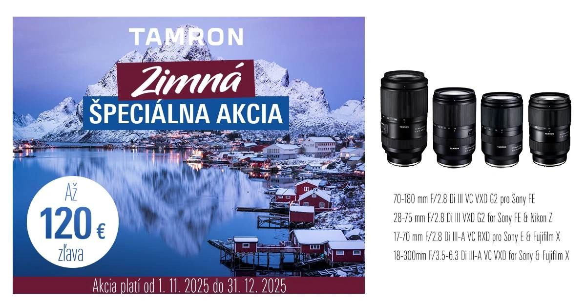 Nepremeškajte zimnú akciu od spoločnosti Tamron a zakúpte si u nás uvedené vybrané objektívy so zľavou až do 120€.