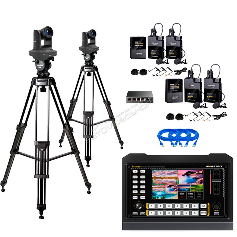 Kompletné 2-kamerové televízne štúdio s réžiou, s integrovaným diaľkovým ovládaním kamier. Réžia má aj vstavaný zvukový mixpult. Súčasťou setu sú aj bezdrôtové mikrofóny pre 4 osoby.