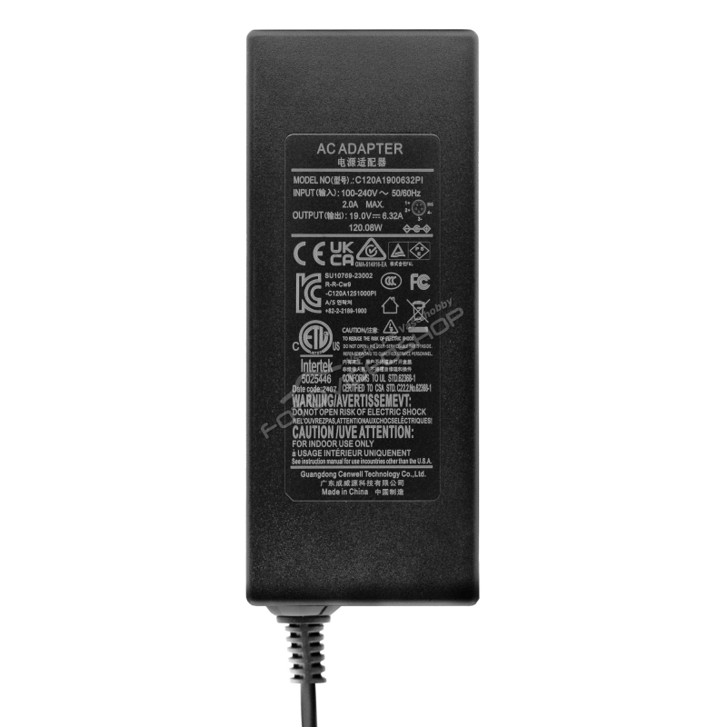 5-pinový konektor. Výstupné napätie a prud 19V, 6,32A.