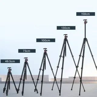 - Výškový rozsah od 49,5 až do 158 cm vám poskytne úplnú kontrolu nad kompozíciou – či už točíte zo zeme alebo nad hlavou.