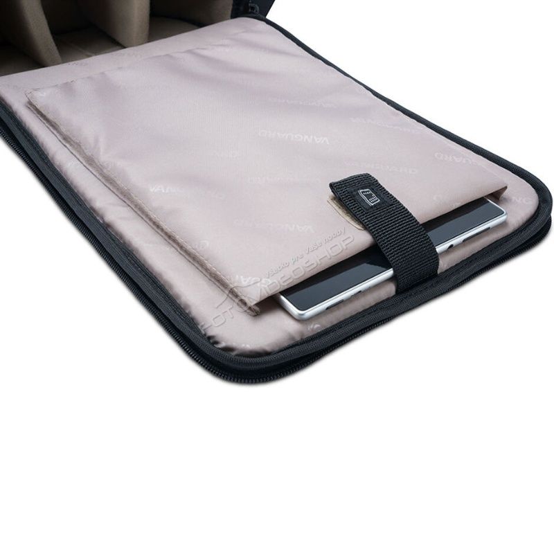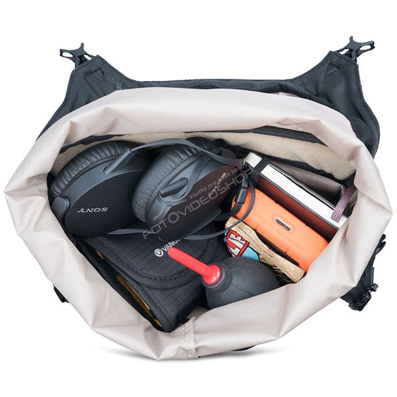 - Nechýba ani špeciálne navrhnuté bočné vrecko na statív alebo monopod – konkrétne pre sériu Vanguard VEO, ale kompatibilné aj s inými značkami.