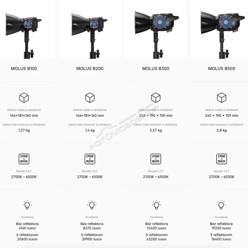 Špecifikácia Zhiyun MOLUS B100 (Bi-Color LED svetlo)